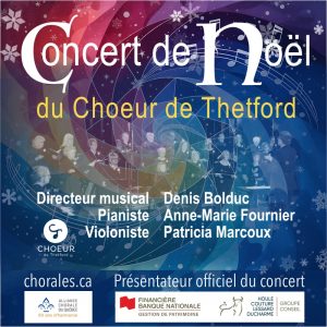 Billetterie Noël , CHANT , CHORALE 7 Décembre 2025 14:00 CONCERT DE NOËL 30 $$ Billets SOIRÉE BÉNÉFICE , GALA , CONCERT 24 janvier 2026 17:00 GALA LA 5E SYMPHONIE DU VITRAIL 125 $$ Billets PIANO , SOPRANO 15 février 2026 14:00 LES AMOURS ET LA VIE D'UNE FEMME 40 $$ Billets HARPE 21 mars 2026 20:00 NEBULAE 40 $$ Billets Humour 27 mars 2026 19:30 BIENTÔT CANCELLÉ 35 $$ Billets Drag Queen , Musique 18 avril 2026 20:00 BOBÉPINE 29 $$ Billets